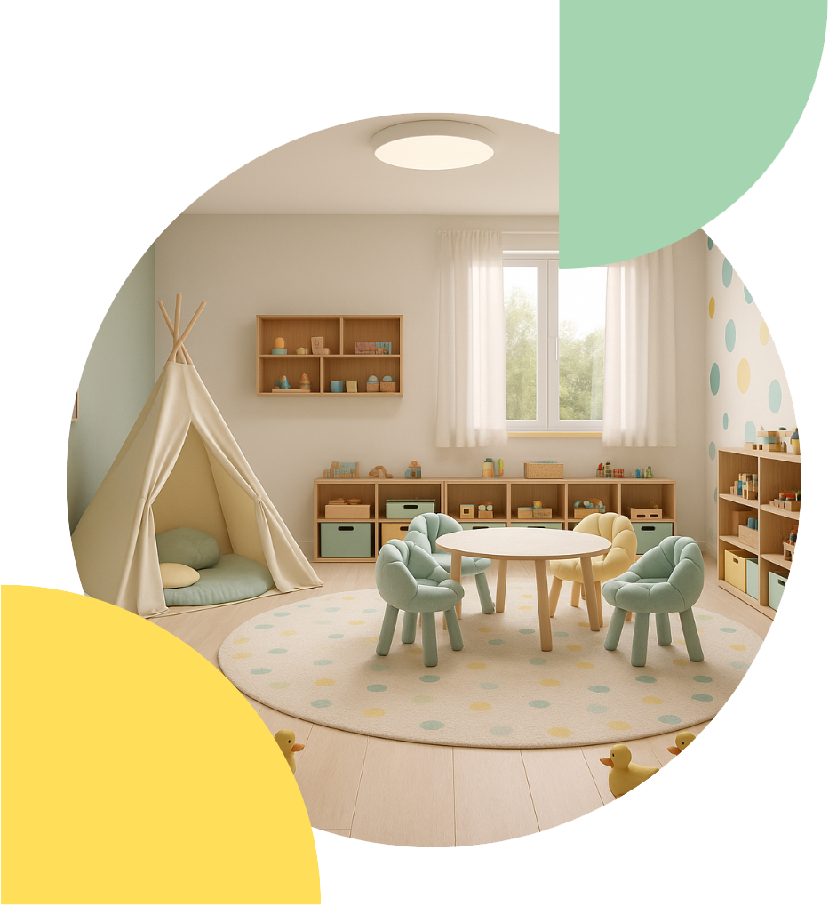 Gwarantujemy dzieciom higieniczne warunki pobytu, stały nadzór opiekuńczy oraz bezpieczną i przemyślaną organizację przestrzeni, sprzyjającą rozwojowi i wyciszeniu.